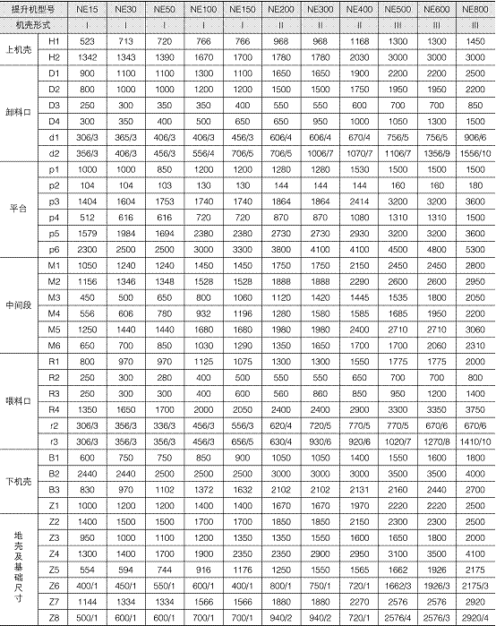 NE系列斗式提升機(jī)技術(shù)參數(shù):