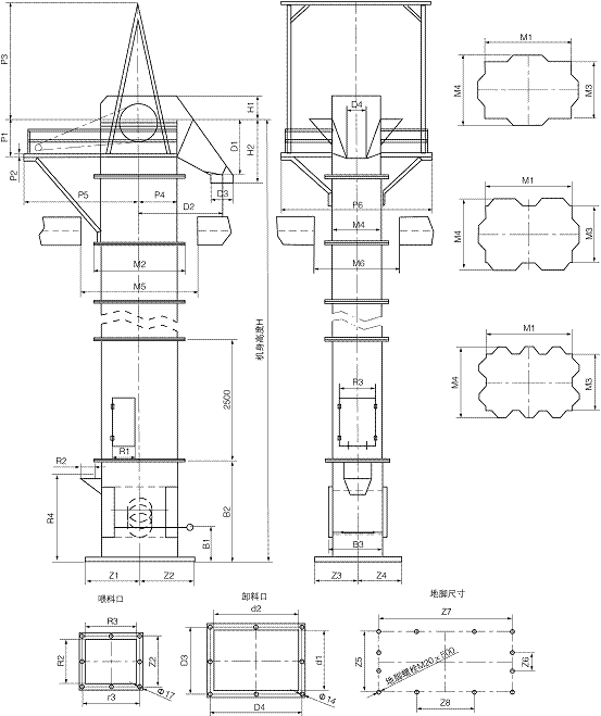 四、NE型斗式提升機(jī)的外形及安裝尺寸: