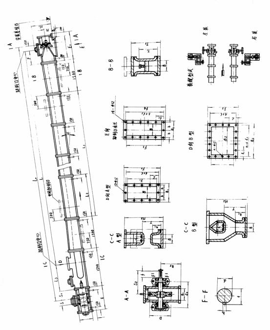 2、刮板鏈條為DV1型,采用內(nèi)向布置,部面圖中均未表示。